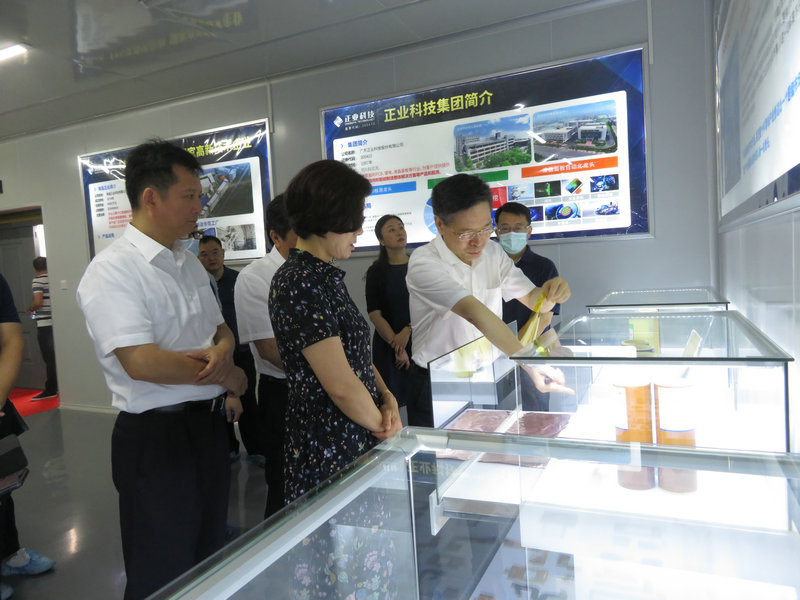 在調(diào)研過(guò)程中,吳副省長(zhǎng)一行參觀了南昌正業(yè)生產(chǎn)車間,正業(yè)科技董事長(zhǎng)徐地華全程陪同并介紹南昌正業(yè)的發(fā)展歷程、發(fā)展規(guī)劃、 產(chǎn)品及生產(chǎn)工藝,吳副省長(zhǎng)仔細(xì)詢問(wèn)電子材料的研發(fā)、應(yīng)用和市場(chǎng)開發(fā)等具體情況。