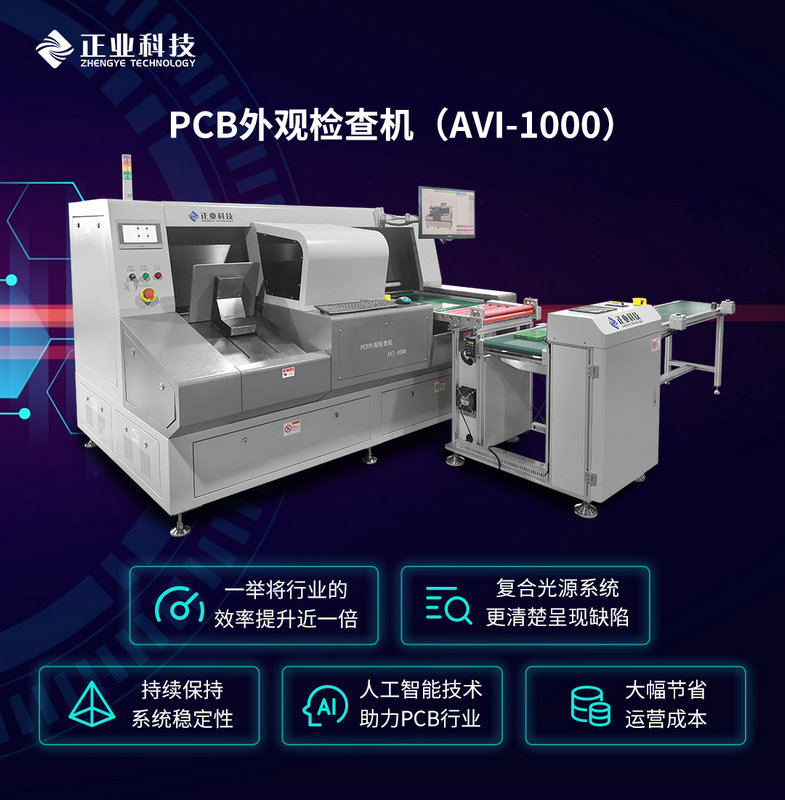 正業(yè)科技AVI-1000系列PCB外觀檢查機,檢測能力尤其出眾,適用于PCB出廠前的外觀檢查,對其缺陷、瑕疵進行檢測,自動上料,出料自動水平堆疊,自動運輸?shù)?/span>VRS工位。