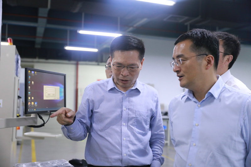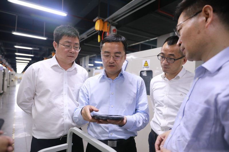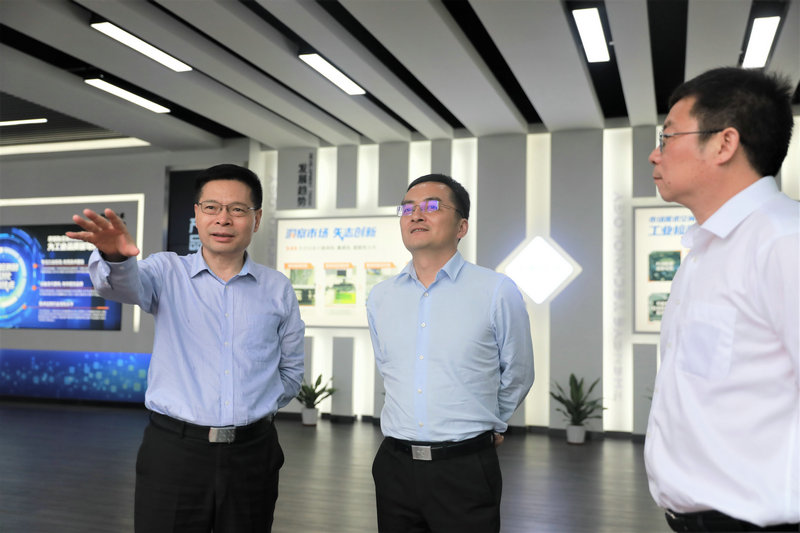 問情況,看發展??疾爝^程中,王強書記一行參觀了正業科技展廳,并深入生產車間,進行實地考察;徐地華董事長向考察團詳細介紹了公司發展歷程、戰略規劃、創新產品以及電子信息相關產業情況。