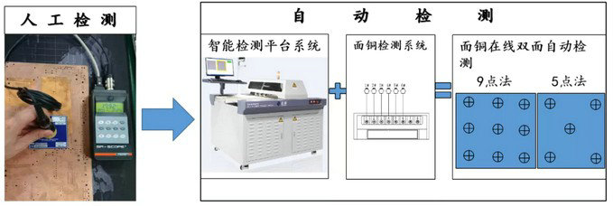 隨著全球信息化,智能化趨勢(shì),面銅厚度對(duì)線路傳輸?shù)碾娏?電壓/高頻/高速信號(hào)至關(guān)重要?,F(xiàn)今行業(yè)面銅檢測(cè)普遍采取人工抽檢或首件檢測(cè)的方式,自動(dòng)檢測(cè)其實(shí)就是替代人工,將檢測(cè)連接產(chǎn)線,實(shí)現(xiàn)即時(shí)檢測(cè)。