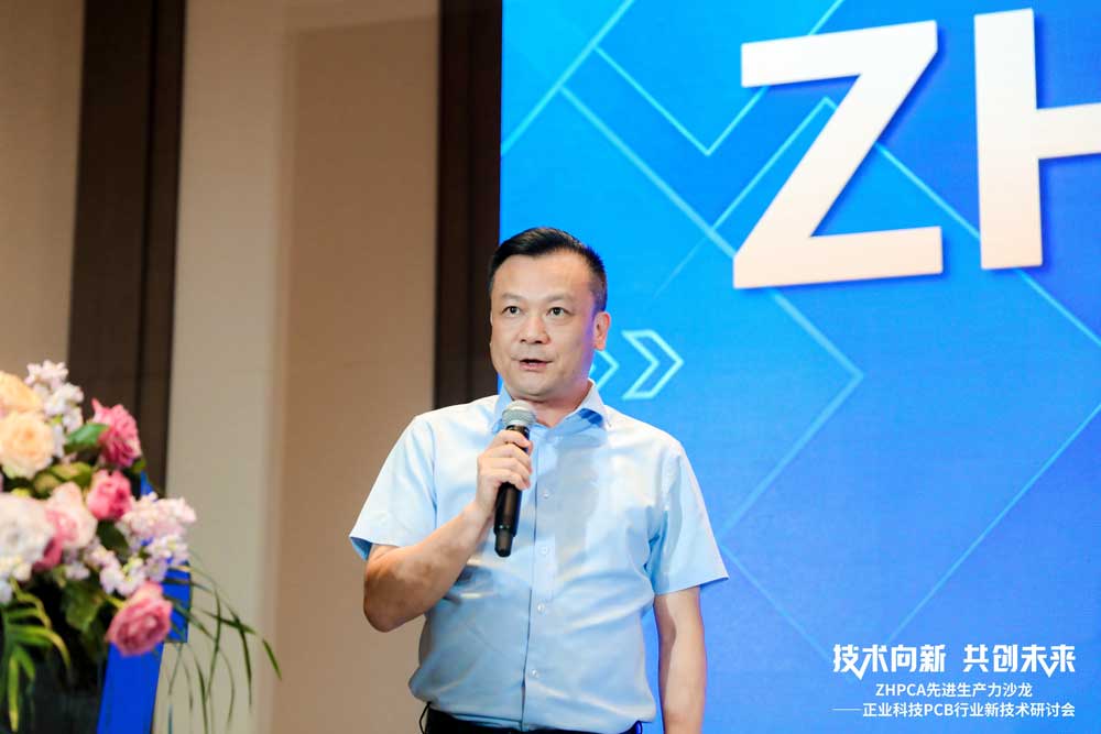 隨后,正業科技黨支部副書記徐地華先生上臺致辭,他誠摯地向ZHPCA及所有業界同仁表達了公司的深切感激與美好祝愿。他強調,PCB行業作為正業科技的堅實基石,公司將加大技術創新力度,推出更加智能化、數字化的解決方案,以精準對接PCB行業對技術革新、品質卓越及綠色環保的日益增長需求。同時,他寄望與各界朋友攜手并進,深化合作層次,共同開辟行業發展的嶄新篇章,攜手推動PCB產業邁向更加輝煌的未來,共創繁榮共生的行業新生態!